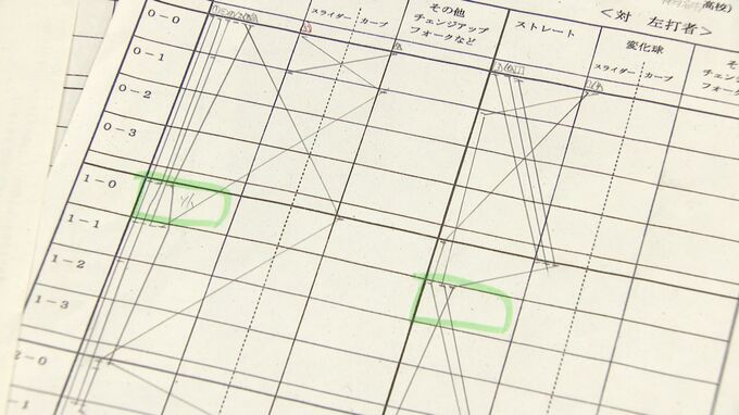 佐賀大会の決勝戦前には、徹夜で相手チームの分析を行いました。投手であれば全ての投球の球速と球種、またそれがどのカウントから投げられたものなのかなど、対戦する選手の特徴を詳細にまとめます。