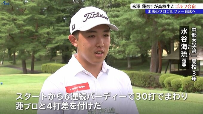 また愛知県の高校から参加している水谷海琉選手は、初めて回るコースにも関わらず、米澤選手より少ない打数で前半を終えました。