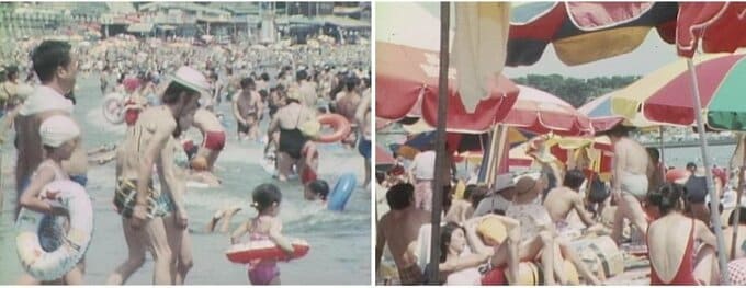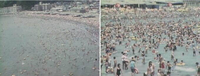 当時の映像には湘南海岸のビーチ全体を埋め尽くすほどの多くの海水浴客が訪れ、とてつもない混雑ぶりがわかります。