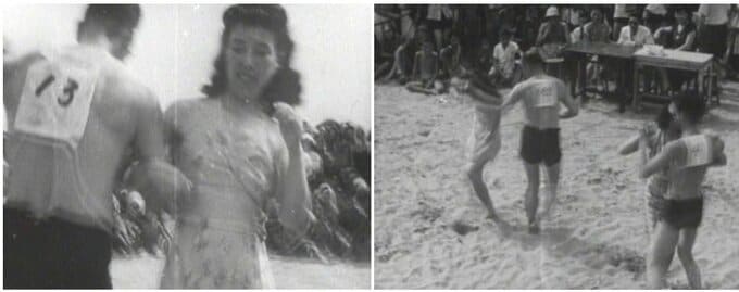 一方、TBSアーカイブをさらに探ってみると、1948年(昭和23年)8月1日、神奈川県・湘南海岸の砂浜でダンスコンテストが開催されている映像が見つかりました。