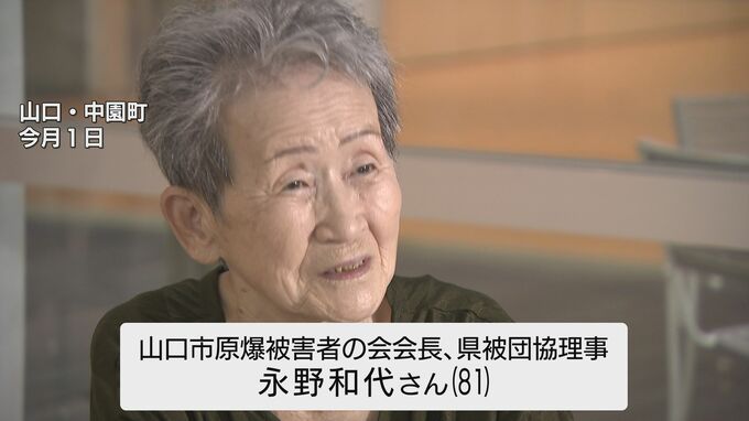 山口市原爆被害者の会会長で県被団協理事の永野和代さん、81歳。