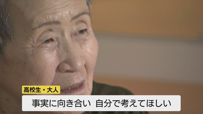 「小学校では修学旅行に行く時に事前学習をする。でも、大きくなって自分が理解できた時には、原爆はどんなに恐ろしいのかっていうのを知って、知った上で、やめようって発信する人になってほしい。そのために私たちは一生懸命、このときああだったんよ、こうだったんよと」