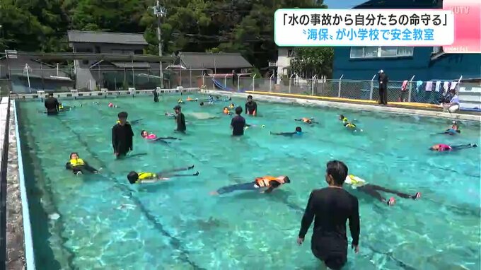 高知県宿毛市の小学校で水の事故防止に向けた安全教室が開かれました。宿毛海上保安署の職員たちが子どもたちに体を浮かせる方法などを伝えました。