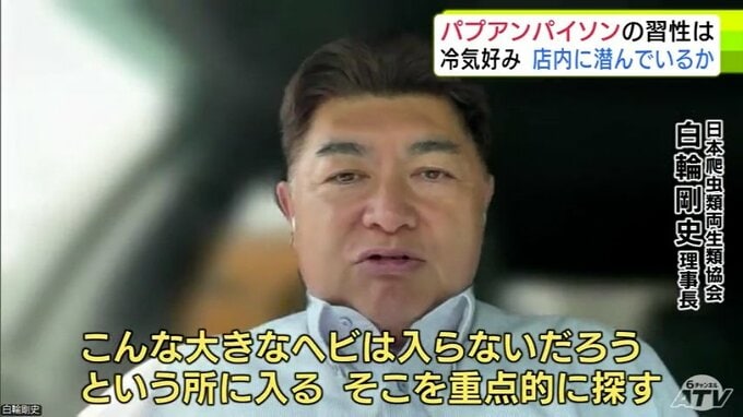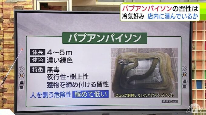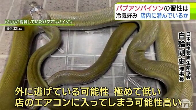 「外に逃げている可能性は極めて低いと思っていて、店の中のエアコンの中に入ってしまう可能性が高い。こんな所に大きなヘビは入らないだろう、という所に入りますので、そこを重点的に探すのはありかなとは思う」