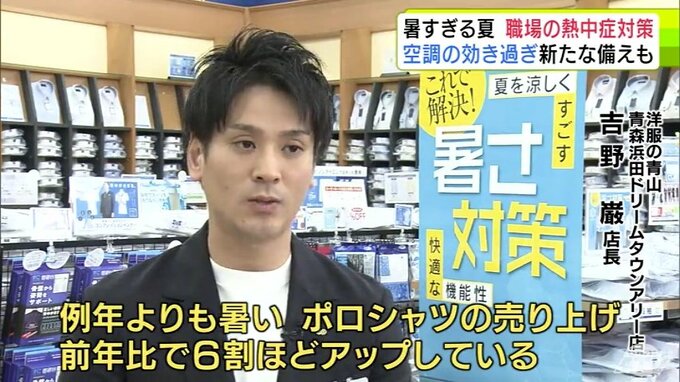 「例年よりも暑いということで、ポロシャツの売り上げが前年比で6割ほどアップしております。夏物の涼しいTシャツが約2割ほど前年より売れ行きが上がっています」