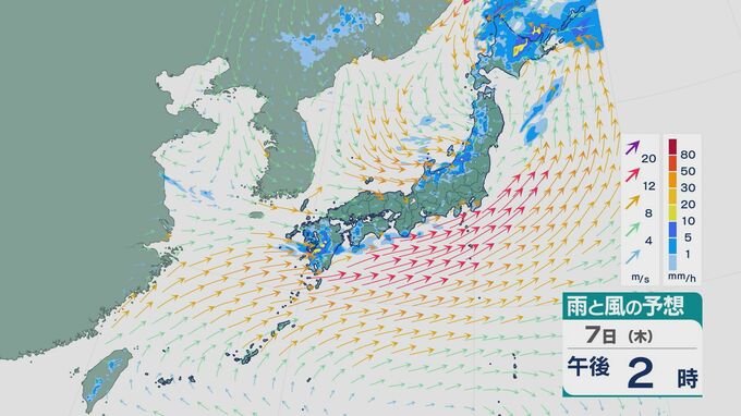 【大雨情報】7日(木)から8日(金)にかけ日本海側を中心に大雨のおそれ 北陸では土砂災害に厳重警戒を 雨と風シミュレーション 北陸放送 2025年8月7日(木) 09:41 国内 今後の雨と風の予想ですが、7日の午前中は太平洋側でも雨の降るところがありそうです。 昼過ぎからは、北陸や東北の日本海側にかけて雨が降るでしょう。 8日の未明からは、日本海側や九州でも雨の降り方が激しくなりそうです。