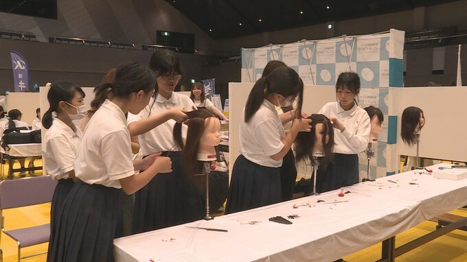 会場には製造業や情報、IT、サービス、医療福祉など47のブースが並びます。小学生から高校生までが業務内容などの説明を受けながら、いろいろな仕事に挑戦していました。