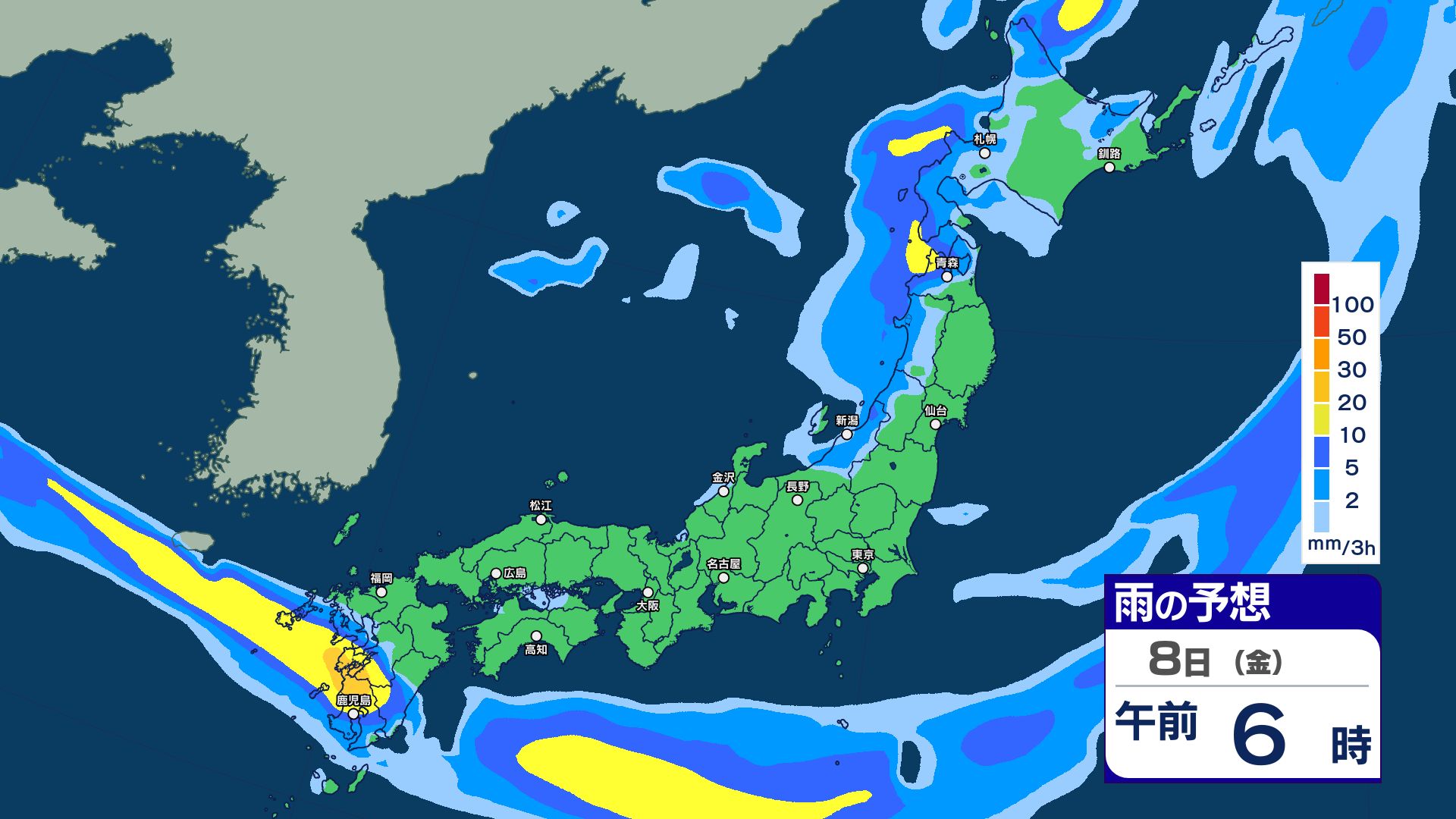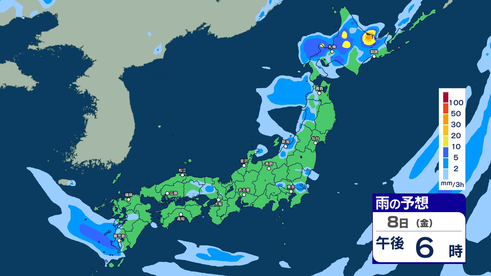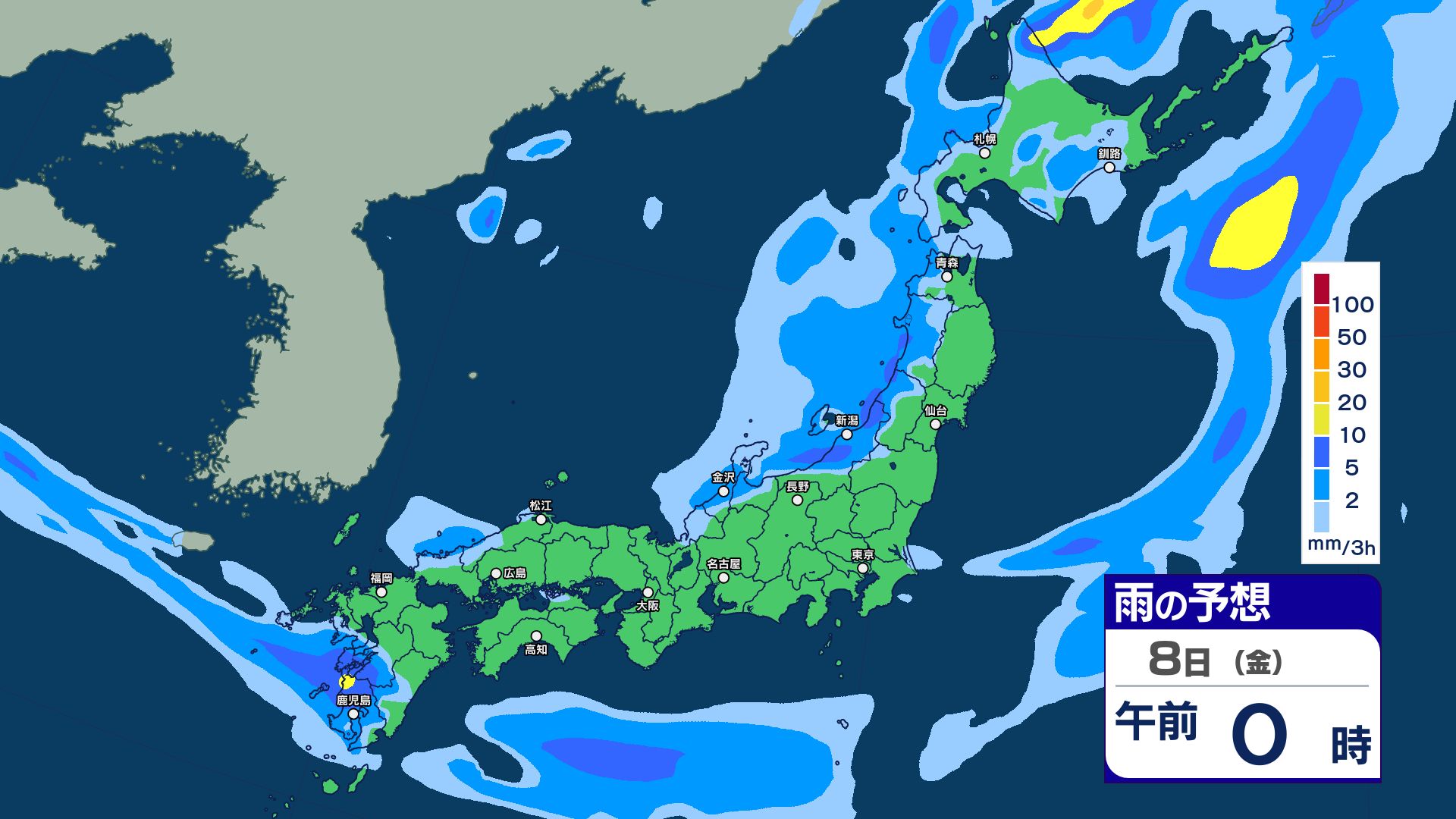 今後の雨はどこで降る?北海道・東北・近畿80ミリ 北陸100ミリ 九州北部150ミリ(~8日正午まで・多い所)【雨のシミュレーション画像】気象庁