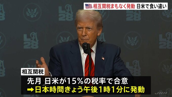 アメリカのトランプ政権はまもなく世界各国に新たな相互関税を発動します。日本には15%が課されますが、適用方法をめぐり食い違いが浮き彫りとなっています。相互関税をめぐっては、先月、日米が15%の税率で合意…