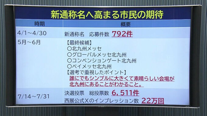 北九州市は、小倉北区の西日本総合展示場新館について、「北九州」が入った新たな名称を公募し、4つの候補に絞って決選投票を行いました。