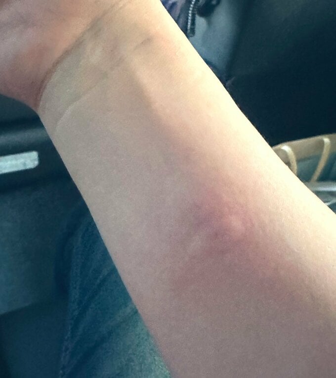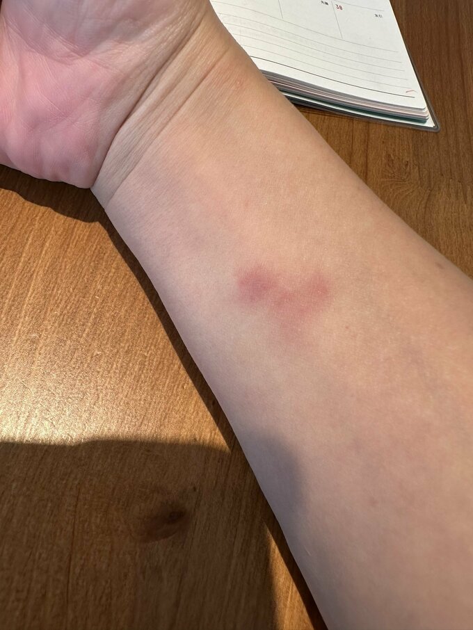 皮膚の赤みはまだ残るものの、ぷっくりしていた腫れがひいた状態の腕の写真を投稿し、「お騒がせしました」と締めくくっています。