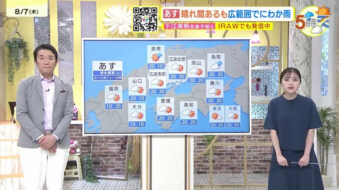 きょう7日(木)の広島県内は、低気圧からのびる寒冷前線が中国地方を南下した影響で、一時的に荒れた天気になりました。局地的に雷を伴い激しい雨が降った地点もあります。特に明け方から朝にかけて、1時間雨量…