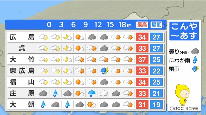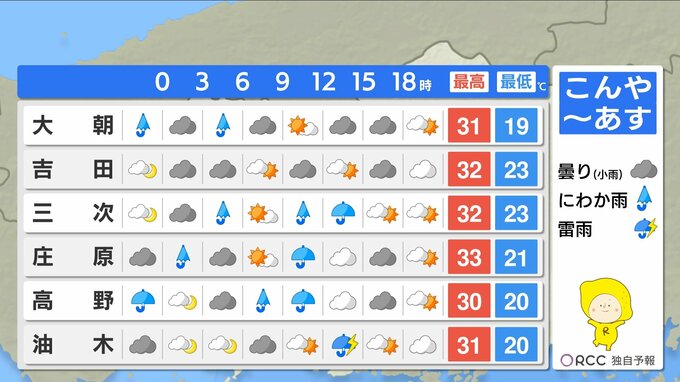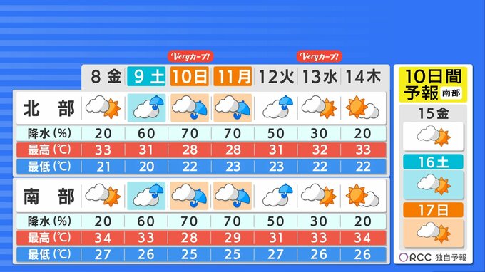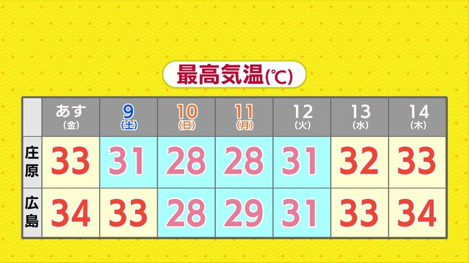しばらく雲が広がりやすく日曜日以降は雨が降る見込みで、雨脚が強まる時間帯もあるでしょう。3連休はあいにくの空模様になりそうです。雨雲のかかり具合によってはまとまった雨になる可能性があるため、雨の降り方には気をつけてください。日中の気温は、日曜日以降雨の影響で30℃前後の予想で、湿度は高く蒸し暑いですが、体感としてはかなり過ごしやすくなるでしょう。