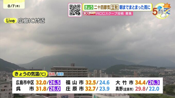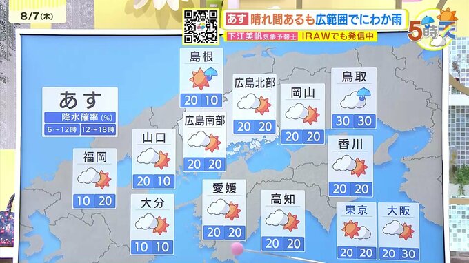 8日(金)晴れ間あるも雲優勢の一日 引き続き大気の状態不安定 広範囲でにわか雨の可能性