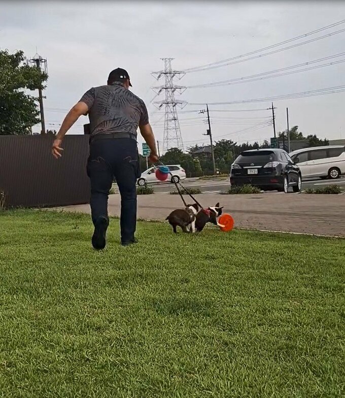 貴乃花光司さんは「ワンちゃんも猛暑の中大変です。水分補給をしながらストレス発散。」と綴ると、動画や写真をアップ。
