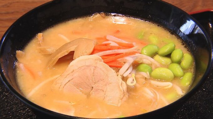 ゆば丼や、ゆばを使ったソフトクリームなど、20種類以上のメニューの中でも売り上げナンバー1は、希少性の高さから「幻の大豆」ともいわれる あけぼの大豆の味噌ラーメン。