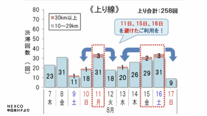 NEXCO東日本/NEXCO中日本/NEXCO西日本/JB本四高速/日本道路交通情報センターは、お盆期間[8月7~17日の11日間]の高速道路での渋滞予測を発表しました。