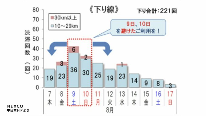 10キロ以上の渋滞は、上下線合わせて479回と予測されています。