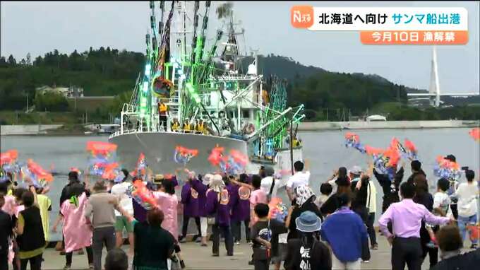 今シーズンのサンマ漁が10日に解禁されます。それを前に、宮城県の気仙沼港から大型サンマ船が漁の前線基地となる北海道へ向けて出港しました。気仙沼港から出港したのは大型サンマ船10隻です。岸壁には市民や乗組…