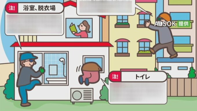 また、侵入場所としては浴室やトイレの窓、さらに物置などにのぼって2階の空いている窓から入るケースもあるということで、全てのカギをかけることを徹底してほしいとしています。