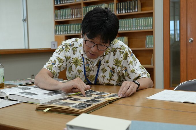 その日にアルバムを預かった指宿市市史編さん室の上川路さん。これまで市民から「昔の商店街の写真」などの持ち込みはあったが、八幡さんのように「写真の場所がどこか知りたい」というパターンは初めてだった。預かってはみたものの、最初は「分かるかな」と不安な気持ちもあった。