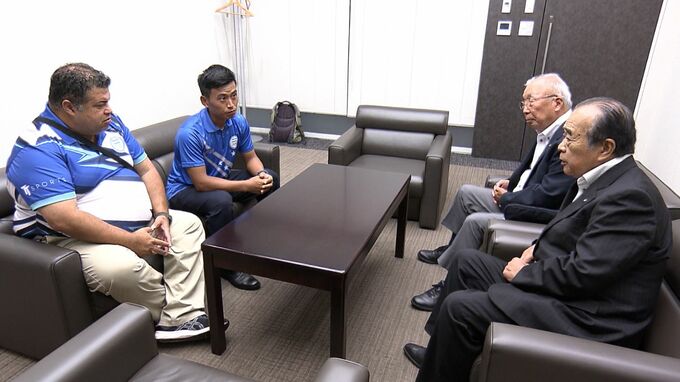 岡山県ソフトボール協会の原会長を訪ねたのは、先月までホンジュラスで活動した下浦隼一さんと、ホンジュラスソフトボール協会会長のノルマン・オチョアさんです。下浦さんらは現地の女子ソフトボールチームを、国際大会に出場するまで強化したものの、指導者や設備などが不足している現状を報告し、環境充実の足掛かりに日本と交流ができればと話しました。