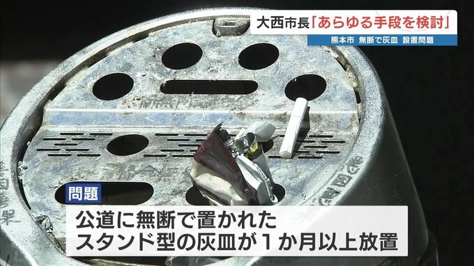 熊本市の下通アーケードに灰皿が無断で置かれている問題で、大西一史市長は「撤去に向けてあらゆる手段を検討する」としています。この問題は、下通と新市街のアーケードが交わる公道に、スタンド型の灰皿が1か月…