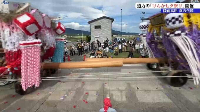 山車を激しくぶつけ合う、岩手県陸前高田市の夏の伝統行事「けんか七夕祭り」が行われています。およそ900年前から受け継がれる伝統行事、「けんか七夕祭り」が行われているのは、陸前高田市気仙町の今泉地区です…