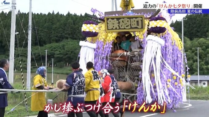 山車を激しくぶつけ合う、岩手県陸前高田市の夏の伝統行事「けんか七夕祭り」が行われています。