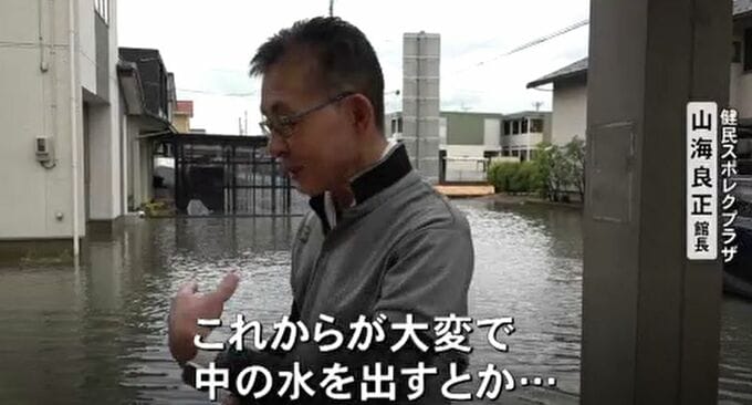 健民スポレクプラザ・山海良正館長「すぐ(水が)入ってきて土のうを置いたけど土のうも流れた」