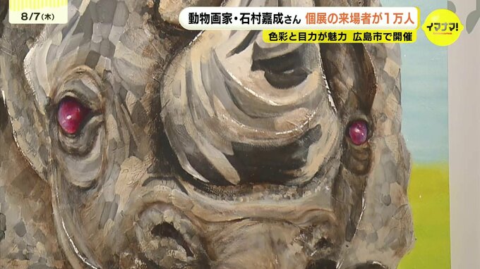 広島市で開催されている動物画家・石村嘉成さんの作品展で、入場者が1万人に達し、記念セレモニーがありました。