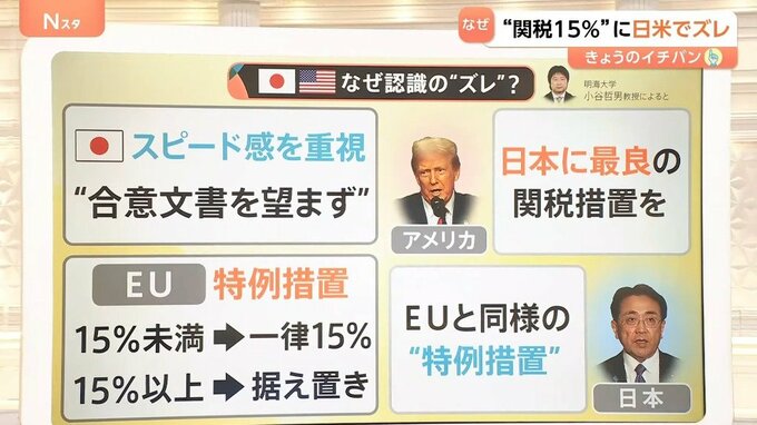 アメリカは「日本に最良の関税措置を」と言っていたため、日本は、EUの特例措置を日本にも適用してくれると思っていました。もっと言うと、きっと閣僚レベルでは、ここで握手できていたのだろうと推察できます。