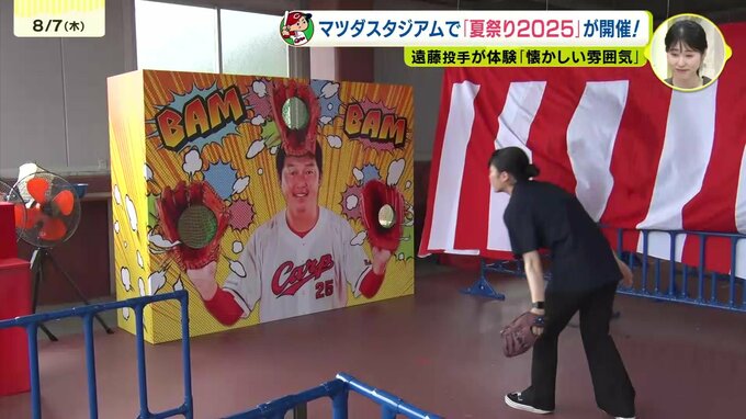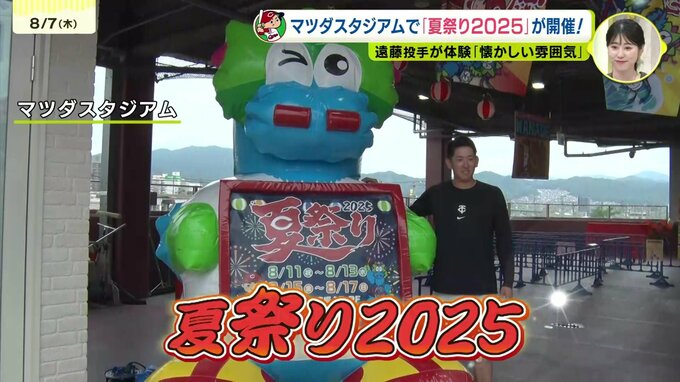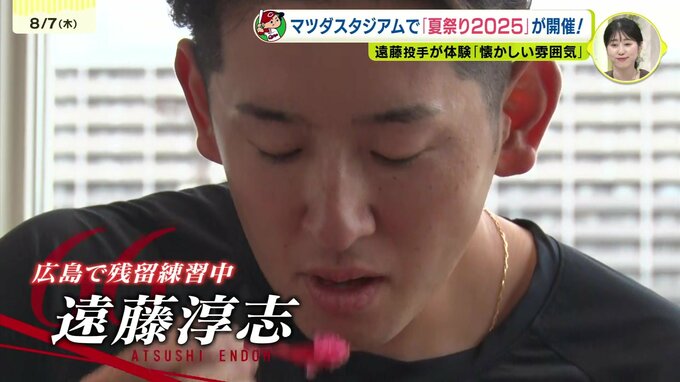 来週(8月11日)からマツダスタジアムで開催される「夏祭り2025」の内覧会が開かれました。先日、2年ぶりの勝利を挙げた遠藤投手が飛び入り参加しました。