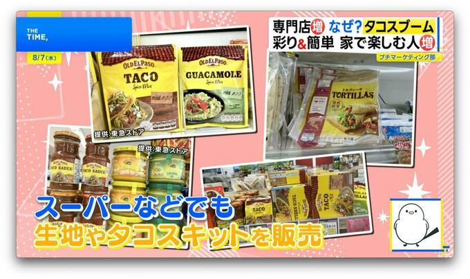 最近では、【スーパーなどでも生地やタコスキットなどが販売】されていることから、自宅でタコスを楽しむ人も増えているとのこと。