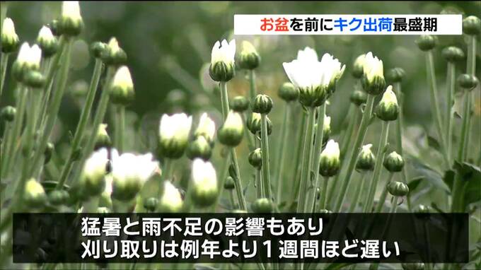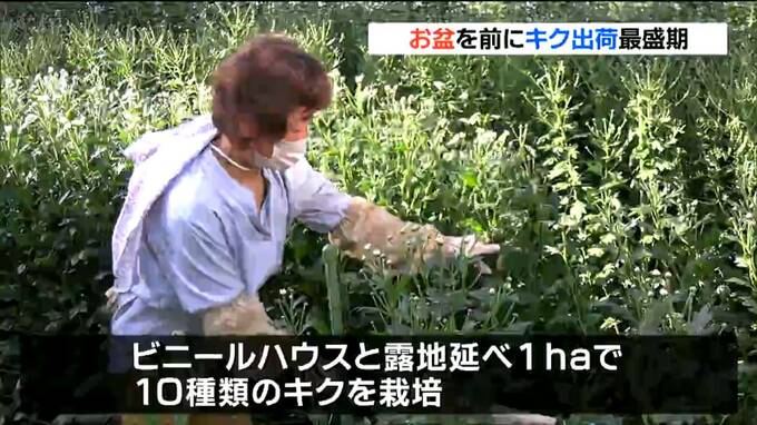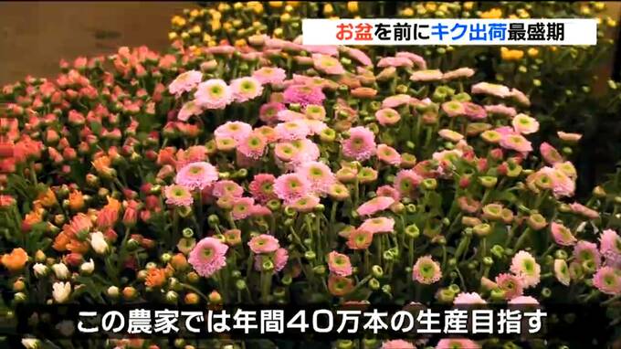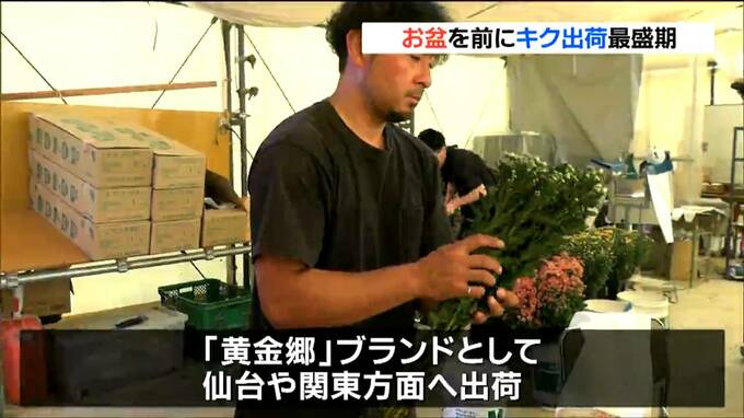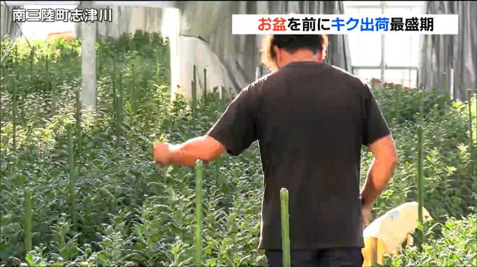 お盆を前に、宮城県南三陸町では、仏壇や墓前に供えるキクの出荷作業が最盛期を迎えています。