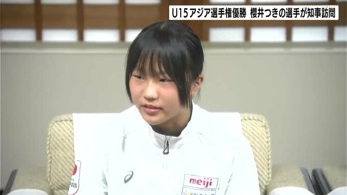 レスリングU15アジア選手権で優勝した中学2年生の櫻井つきの選手が7日、高知県庁を訪れ、濵田知事に喜びを語りました。知事を訪問したのは、高知県香南市の野市中学校2年、櫻井つきの選手です。櫻井選手は7月、キ…