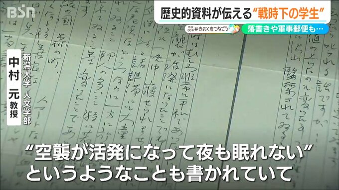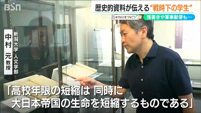 【新潟大学人文学部 中村元 教授】「当時の自分たちと同じくらいの世代の人がどういうふうに戦争の状況を認識していたのか、一方的に『戦争でみんな頑張ろう』というだけではないし、批判的な声ばかりでもない、両方があるということがこの一つの展示の中からもわかる」