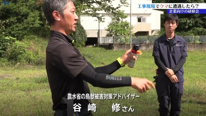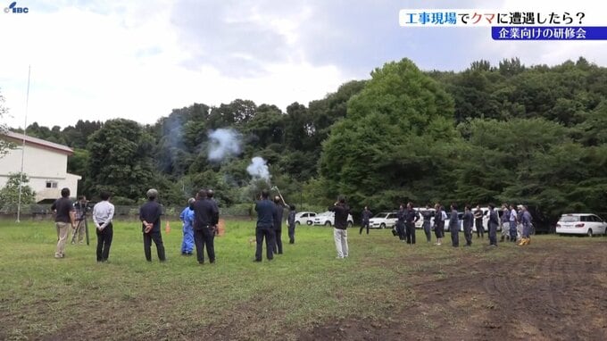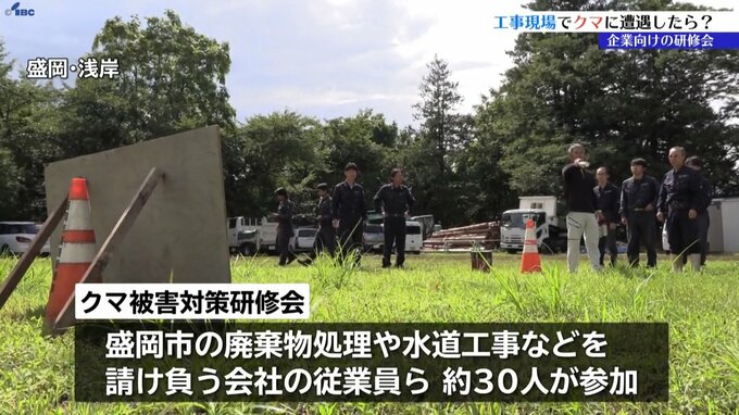 岩手県内でクマの出没が相次ぐ中、工事現場などでクマに遭遇した際の対策を学ぶ、企業向けの研修会が盛岡市で行われました。