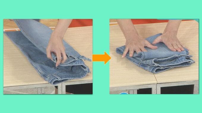 このたたみ方なら、ズボンを重ねても厚みが出ずかさばりません。
