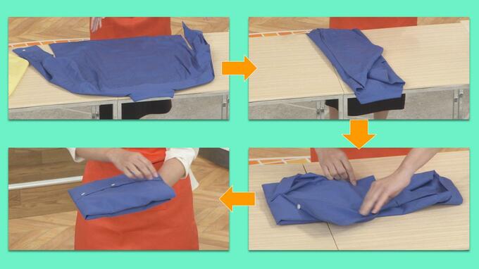 このようにたたむことで、襟も潰れにくくスッキリきれいにしまえます。