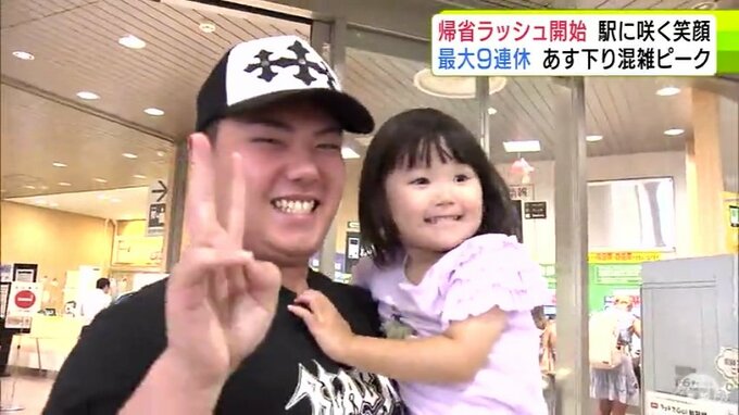 お盆を、ふるさとや行楽地で過ごす人たちの帰省ラッシュが始まりました。明日9日から最大9連休ともされる休みを前に、駅のホームは笑顔があふれています。8日午前、JR新青森駅のホームは大きな荷物や土産を手に、…