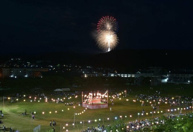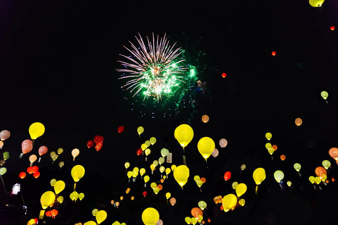 ・能美市誕生20周年をお祝いするバルーンランタンと花火が会場を盛り上げます。