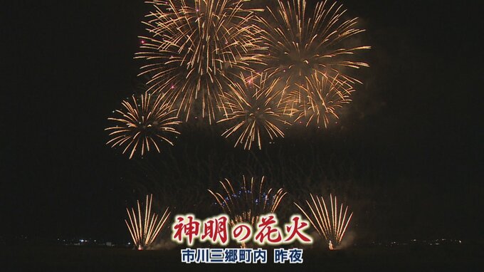 神明の花火が8月7日の夜山梨県市川三郷町で行なわれ、約2万発が夏の夜空を彩りました。