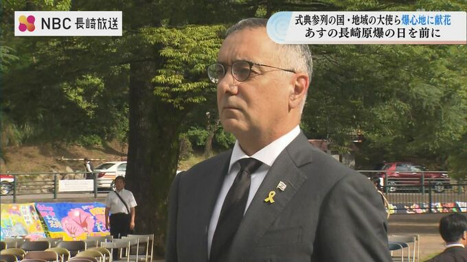 9日の平和祈念式典に参列する各国や地域の駐日大使らが8日、長崎市の爆心地公園で献花しました。原爆落下中心地碑に花を捧げたのは、9日、平和祈念式典に参列する国や地域のうち献花を希望した64の国・地域と、ヨ…