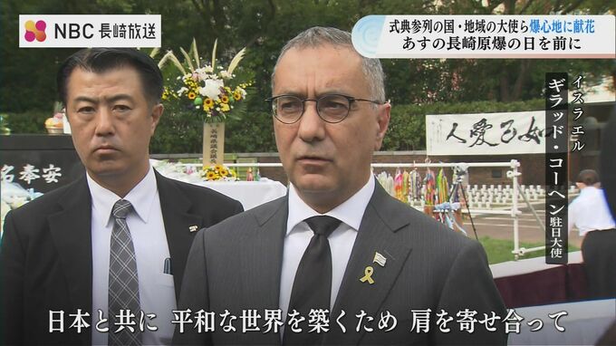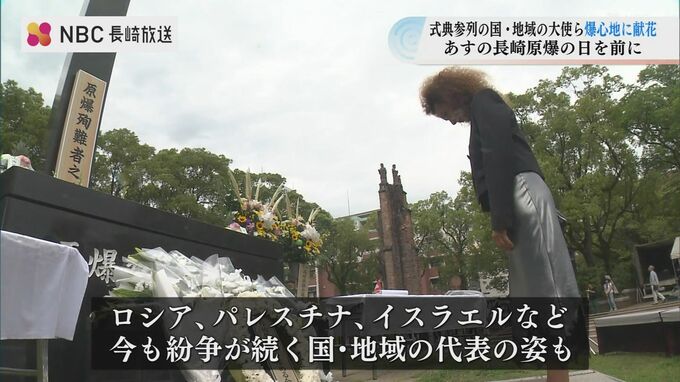 9日の平和祈念式典に参列する各国や地域の駐日大使らが8日、長崎市の爆心地公園で献花しました。