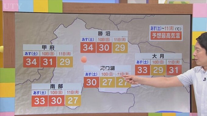 米津龍一気象予報士:きょう台風11号が新たに発生しました。現在日本の南、小笠原諸島の近海にありまして、進路が西寄りに進む予想となっています。ですから日本列島、山梨への直接の影響はない見込みです。あすか…