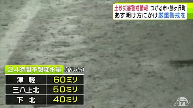 青森県内は大気の状態が非常に不安定になり、つがる市と鰺ケ沢町に「土砂災害警戒情報」が発表されています。明日9日の明け方にかけて、引き続き厳重な警戒が必要です。8日午前7時頃のつがる市。ワイパーを動かし…