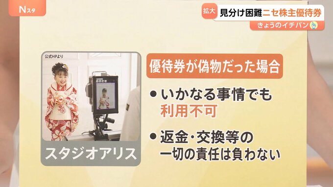 ただ、先ほど紹介した3社の優待券も、偽物の券の流通が確認され、各企業のホームページで注意喚起がされました。
