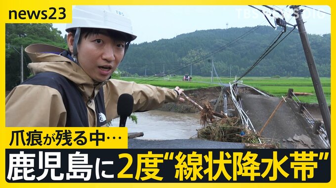 鹿児島県に大きな被害を出した線状降水帯。8日夜も再び激しい雨が降っていて警戒が必要です。報告「霧島市に来ています。午後8時半過ぎから、また大粒の雨が降ってきました」喜入友浩キャスター「午後8時過ぎの鹿…