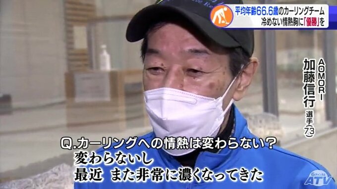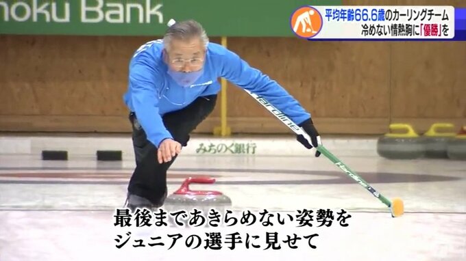 11月24日に青森県で開幕する日本シニアカーリング選手権。50歳以上の選手が出場するこの大会に男子最年長チームとして挑むのが青森県代表の「AOMORI」です。平均年齢は66.6歳、酸いも甘いも知り尽くした大ベテランのカーラーたちが日本一に挑みます。